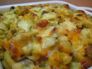 But really, you can throw in whatever leftovers you have with the macaroni. The must-haves are only cream of mushroom soup and cheese.