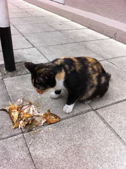 Monchies and I are almost always drawn to comot cats. I don’t know what it is. When beauty strikes, I believe the opposite of beauty slashes. Even harder, stronger and deeper. So when we saw this on our way to the bicycle shop on Wednesday, the whole world had to wait. The bicycle shop included.