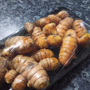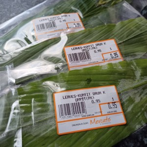 So I looked high and low for turmeric leaves when Kitreena and I were at Mercato yesterday. And what I had to pay for it angered me in more ways than not. At my Dad’s place, there are pots upon pots of turmeric bushes it’s not even funny! Makan tak habis, they fill almost every corner of his backyard.