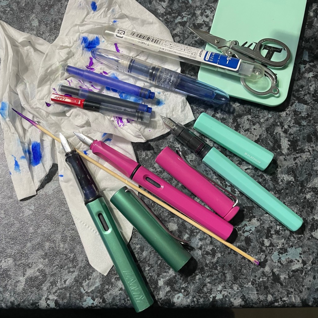 This post has nothing to do with Pensacola, or Pensacola Beach where I was 20 years ago. I was just looking for words that start with ‘pen’ to describe what I spent a good three hours on tonight. After 40 years of being a fountain pen user, today I learned how to clean them nibs, from my seventeen-year-old son. We are big fans of LAMY!