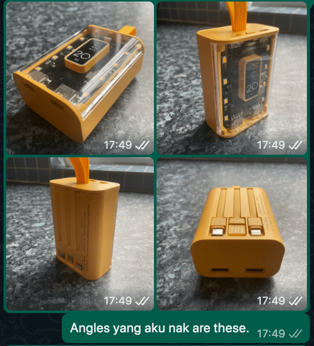 Seterusnya ambil lah gambar yang menunjukkan bentuk, ketebalan, dan bahagian lain yang tak dapat dilihat daripada gambar pertama.
