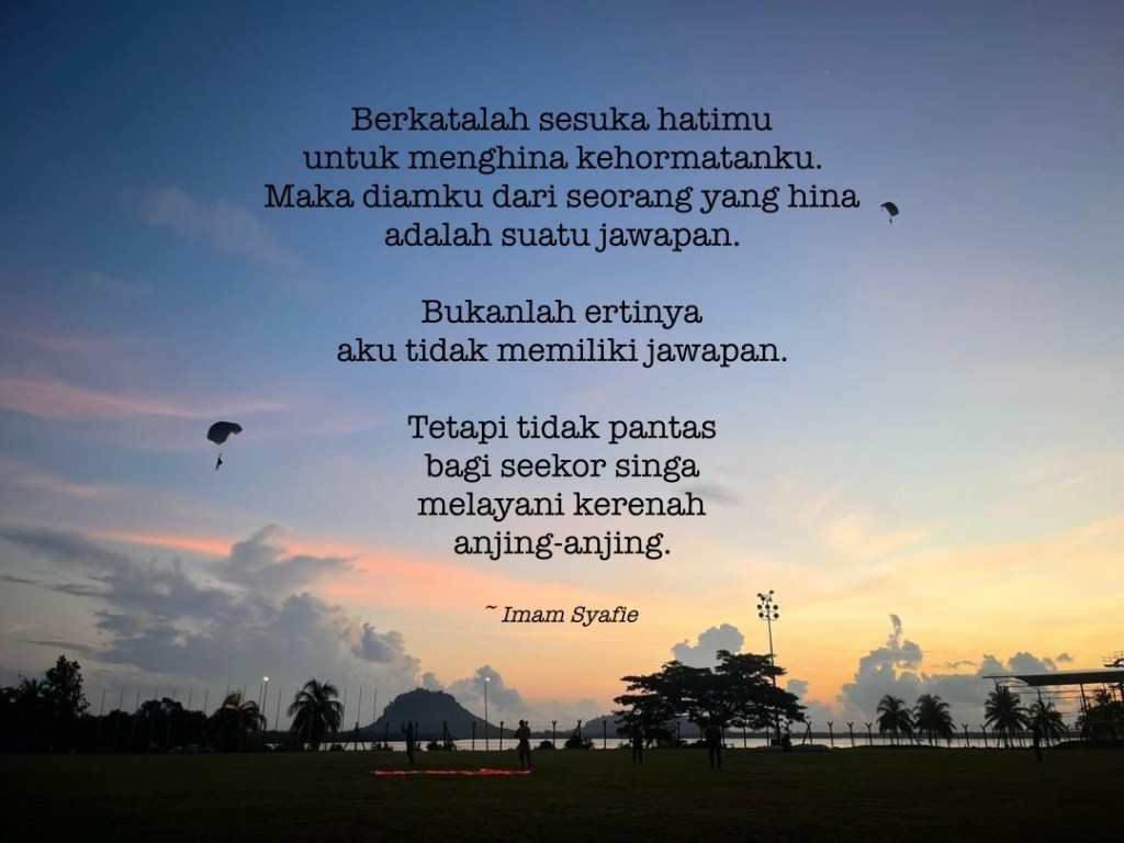 Tak ingat langsung pantun ini. Lupa betul. Lupa terus. Kalau tak kerana Edrick mengemas aras satu Mesra, tempat saya berkubang mengusahakan Airwings dari tahun 2012 sampai ke tahun 2019, memang pantun ini akan jadi bahan artifact saja. Bahan peninggalan sejarah dan bahan bukti kejiwangan saya. Habis semua buku catatan saya dibawa naik si Dedek. Buku catatan yang masih banyak halaman kosong, tak ada satu pun penuh. Kadang-kadang jiwang saya ini hangatnya cuma sekejap.